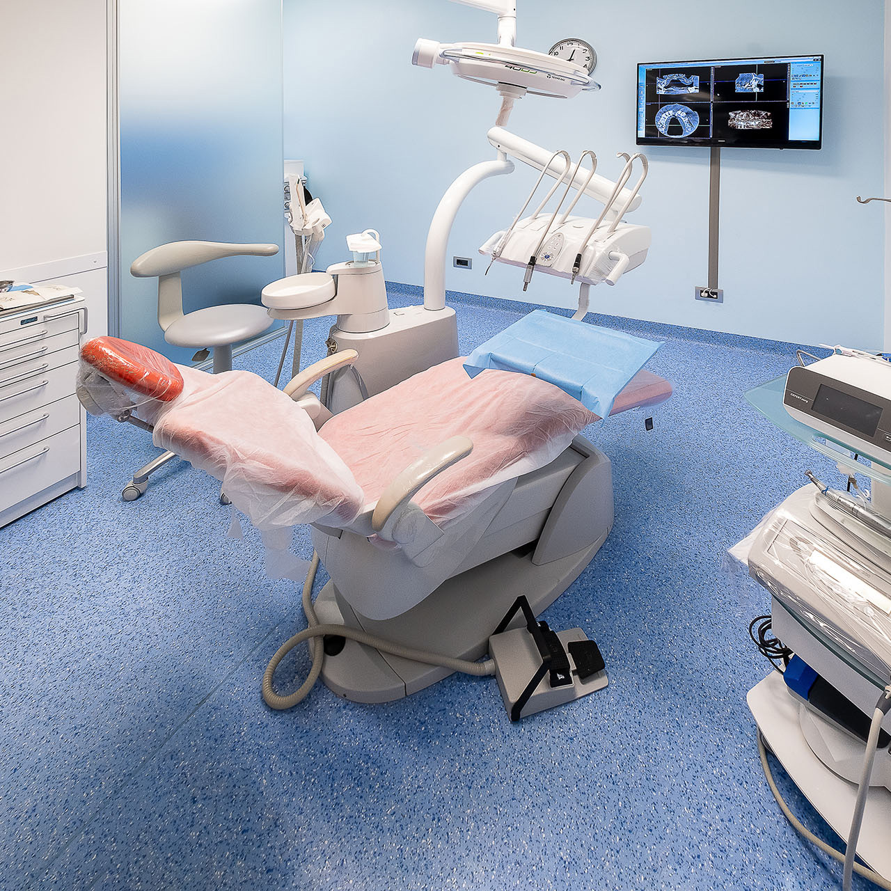 Lo studio è composto da spazi riservati all’accettazione e da varie stanze di lavoro. Tra queste troviamo le cinque sale operative, di cui una dedicata esclusivamente alla chirurgia e implantologia, una interamente attrezzata per la diagnostica per immagini, ed un’altra con tutte le moderne strumentazioni per la disinfezione e sterilizzazione.