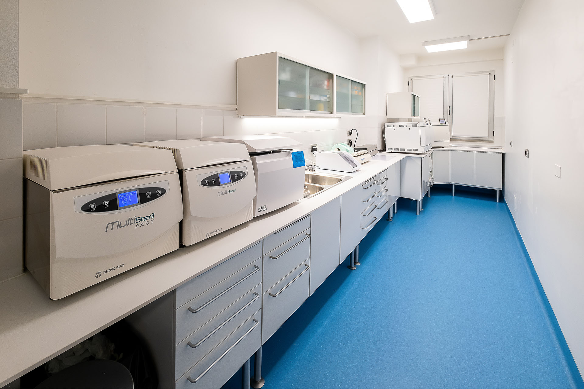 Lo studio è composto da spazi riservati all’accettazione e da varie stanze di lavoro. Tra queste troviamo le cinque sale operative, di cui una dedicata esclusivamente alla chirurgia e implantologia, una interamente attrezzata per la diagnostica per immagini, ed un’altra con tutte le moderne strumentazioni per la disinfezione e sterilizzazione.